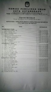 INFO TOTABUAN, KOTAMOBAGU – Komisi Pemilihan Umum (KPU) Kota Kotamobagu Mengumumkan 10 calon Panitia Pemilihan Kecamatan (PPK) yang lulus tes tertulis, Rabu (01/11) tadi. Berikut daftarnya.(**)