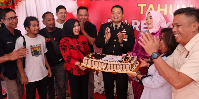 Peringati Hari Bhayangkara Ke-77, PWI dan IJTI Kotamobagu Beri Hadiah Kue Ulang Tahun Kepada Kapolres