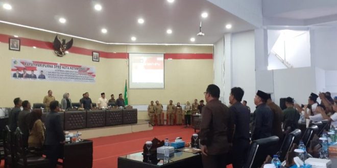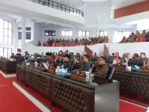Rapat paripurna digelar di ruangan paripurna DPRD kotamobagu dipimpin Ketua DPRD kotamobagu Meiddy Makalalag, ST didampingi Syarifudin J Mokodongan, Herdy Korompot.