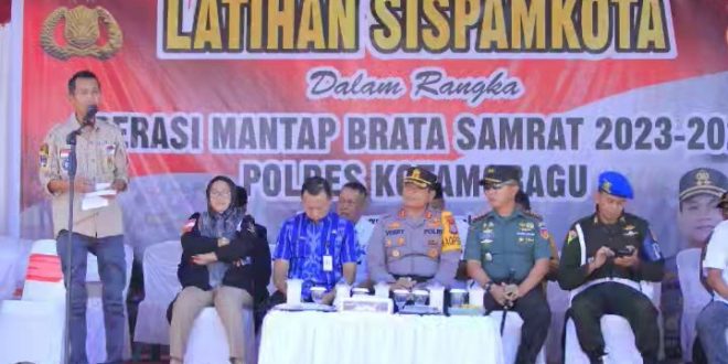 Infototabuan, Kotamobagu – Mewakili Pemerintah Asisten 1 Kota Kotamobagu Nasli Paputugan menghadiri simulasi Sistem Pengamanan Kota (Sispamkota) dalam rangka Oprasi Matap Brata Samrat 2023-2024 oleh Polres Kotamobagu bertempat di Jln. Ahmad Yani, Kamis (22/09).