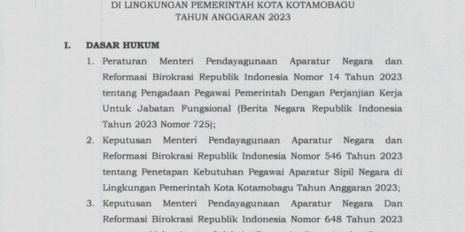 “Pemerintah Kota Kotamobagu membuka kesempatan bagi Warga Negara Republik Indonesia yang berminat mengikuti Seleksi Pengadaan Calon Aparatur Sipil Negara Jabatan Fungsional Guru Tahun Anggaran 2023, sebagaimana dalam ketentuan dan rincian formasi,” demikian bunyi redaksi pengumuman yang ditandatangani Sekda Kotamobagu Sofyan Mokoginta, tertanggal 18 September 2023.