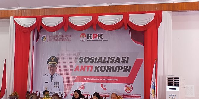 Infototabuan, Kotamobagu – Pemerintah Kota Kotamobagu, bekerja sama dengan Komisi Pemberantasan Korupsi Republik Indonesia (KPK RI) menggelar sosialisasi anti korupsi, di aula rumah dinas Walikota, Selasa (31/10).