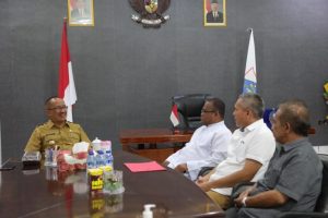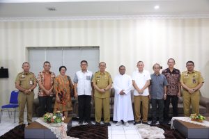 Infototabuan, Kotamobagu – Penjabat Walikota Kotamobagu, Dr. Drs. Hi. Asripan Nani., M.Si menerima kunjungan Pastor Paroki Kristus Raja Kotamobagu, Pastor Oktorius Thomas Eky Lalio, Pr dan pengurus Dewan Pastoral Paroki (DPP) serta Panitia Pesta Pelindung Paroki Kristus Raja Kotamobagu, di ruang kerja Wali Kota, Senin (13/11).
