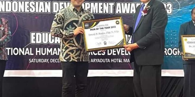 Infototabuan, Kotamobagu – Direktur Rumah Sakit Umum Daerah (RSUD) Kota Kotamobagu Fernando Mongkau, S.Kep, Ns, M.Kes mendapatkan penghargaan Man of the year dari IHRDP (Human Resource Development Program) Foundation, bertempat di Hotel Arya Duta Manado Sabtu 16 Desember 2023.