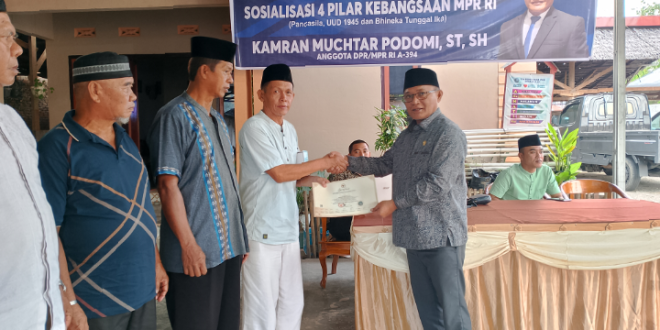 Infototabuan – Anggota Dewan Perwakilan Rakyat Republik Indonesia (DPR RI) dari fraksi Nasdem Kamran Muchtar Podomi ST SH, melakukan Sosialisasi Empat Pilar di Kecamatan Lolayan, Selasa (12/03).