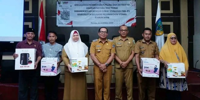 Info Totabuan – Pemerintah Daerah (Pemda) Bolaang Mongondow Utara (Bolmut) menggelar kegiatan Sosialisasi Pembayaran Pajak Secara Non tunai dirangkaikan dengan Rapat Evaluasi Pajak Bumi Dan Bangunan PBB-P2 Kabupaten Bolaang Mongondow Utara tahun 2024, Senin (23/12/2024).