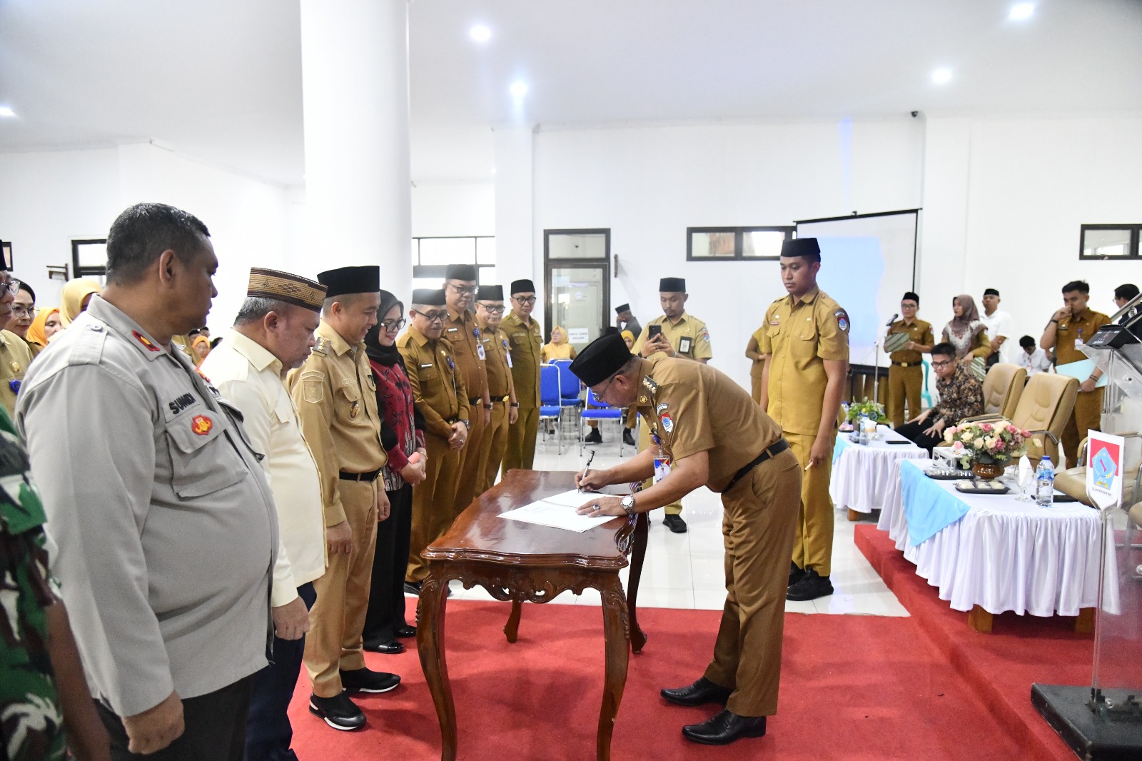 Acara yang digelar di lantai 1 Kantor Bupati, Senin 22/9/2025 ini dihadiri oleh Wakil Bupati Argo V. Sumaiku, Ketua TP-PKK Ny. Rosita Manoppo-Pobela, Ketua DPRD Samsudin Dama, Sekretaris Daerah M. Iksan Pangalima, unsur Forkopimda, TPPS Provinsi Sulut, Bank Sulutgo, PT ASA, BPJS Kesehatan, BPS, TNI-Polri, Kemenag, Pengadilan Agama, camat, sangadi, tenaga kesehatan, penyuluh KB, hingga pengolah data stunting.
