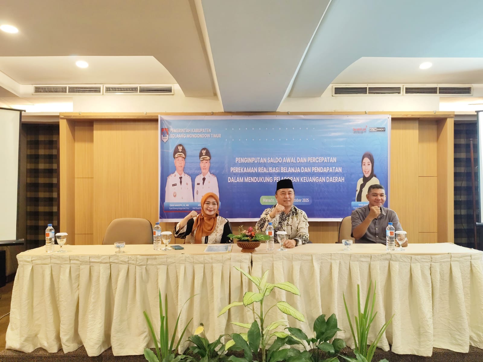INFOTOTABUAN.COM Boltim-Wakil Bupati Bolaang Mongondow Timur (Boltim), Argo V. Sumaiku, mewakili Bupati Oskar Manoppo, menutup secara resmi kegiatan Bimbingan Teknis (Bimtek) Penginputan Saldo Awal dan Percepatan Perekaman Realisasi Belanja dan Pendapatan dalam rangka mendukung pelaporan keuangan daerah. Kegiatan yang digagas Badan Pengelolaan Keuangan dan Pendapatan Daerah (BPKPD) Boltim tersebut digelar di Hotel Quality, Manado, Jumat (24/10/2025).