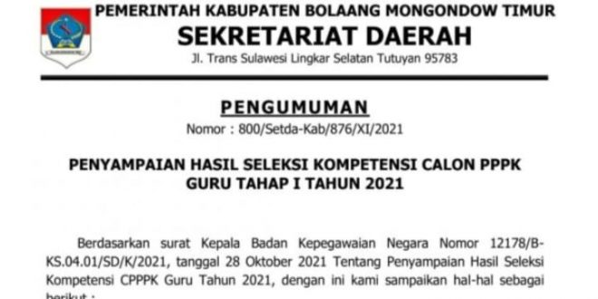Selengkapnya »Ini Hasil Seleksi PPPK Guru Tahap 1 Pemkab Boltim