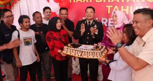 Peringati Hari Bhayangkara Ke-77, PWI dan IJTI Kotamobagu Beri Hadiah Kue Ulang Tahun Kepada Kapolres