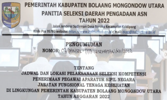Infototabuan,Bolmut – Pemerintah Kabupaten (Pemkab) Bolaang Mongondow Utara (Bolmut) melalui Badan Kepegawaian Pendidikan dan Pelatihan (BKPP) mengumumkan Jadwal dan Lokasi …